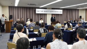 8月16日(土)13:30より富山電気ビルにて令和7年度同窓会総会が開催された。宮前宏司同窓会長の挨拶に始まり、南部千恵子校長の挨拶、来賓の金厚有豊氏からの祝辞ののち、令和6年度行事および決算・監査報告、続いて令和7年度役員案、令和7年度行事および予算案が審議された。